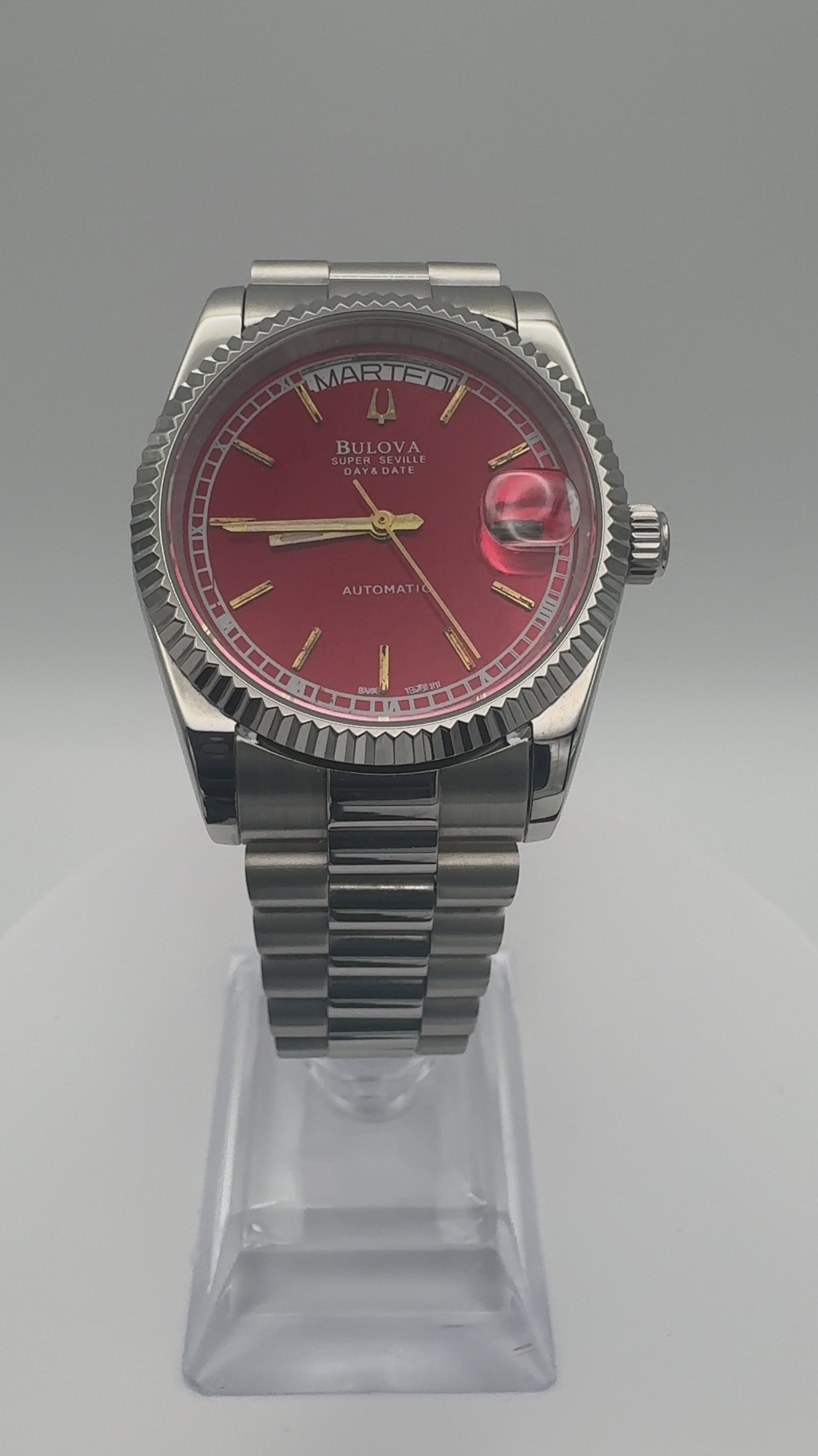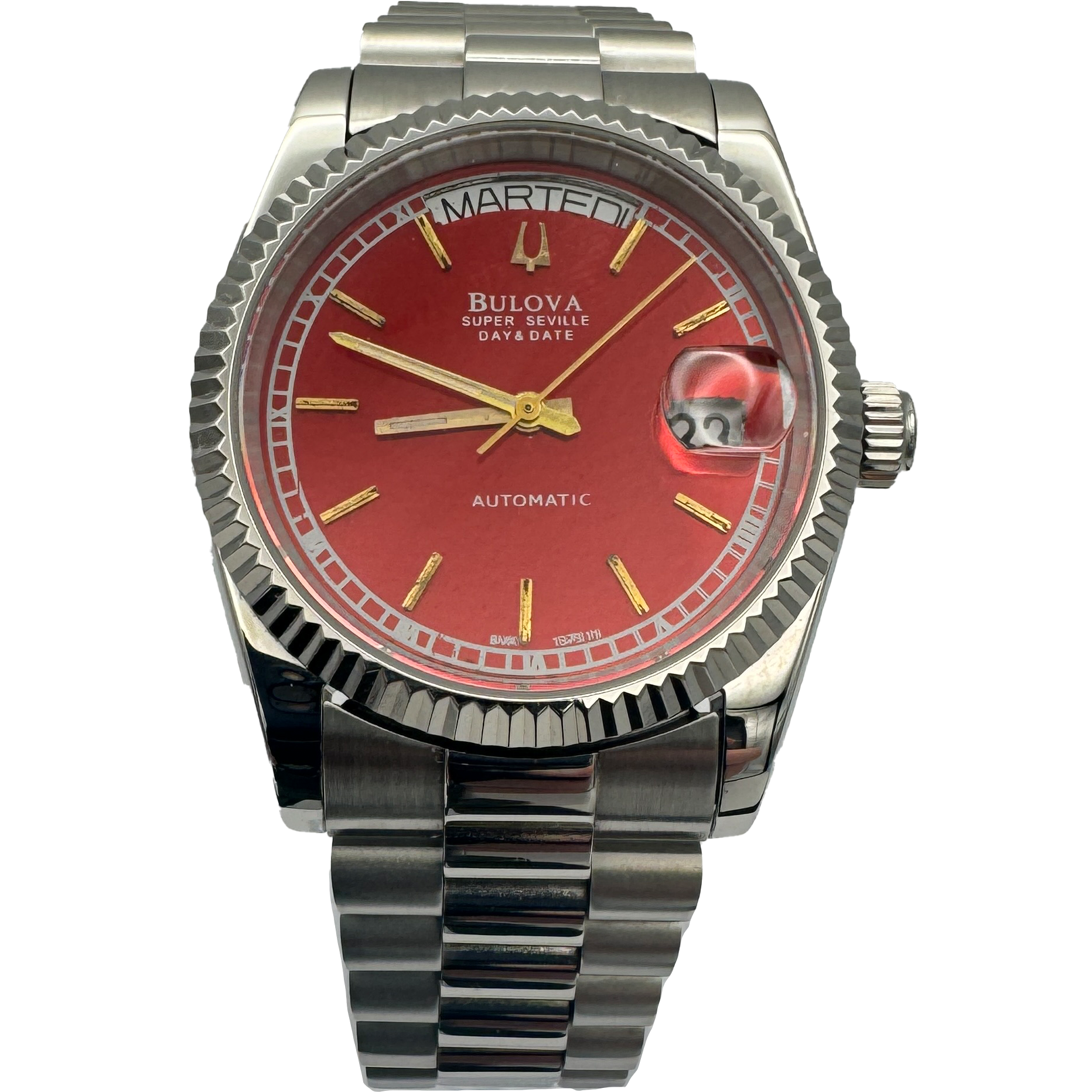 Bulova Super Seville Red Dial Day-Date President Vintage Automatic Wristwatch: