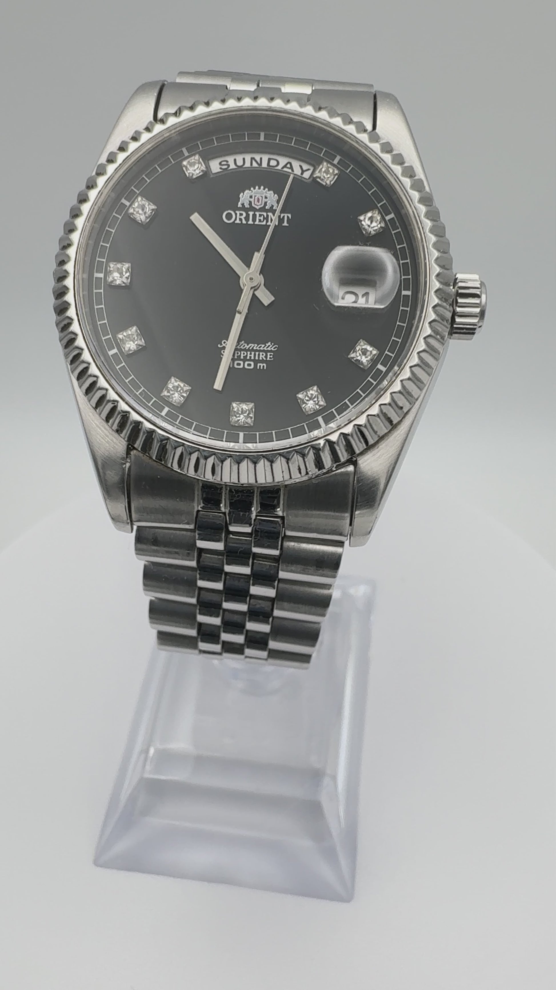 Orient President Automatic Vintage Day-Date Wristwatch (Black Dial, SEV0J003BY):
